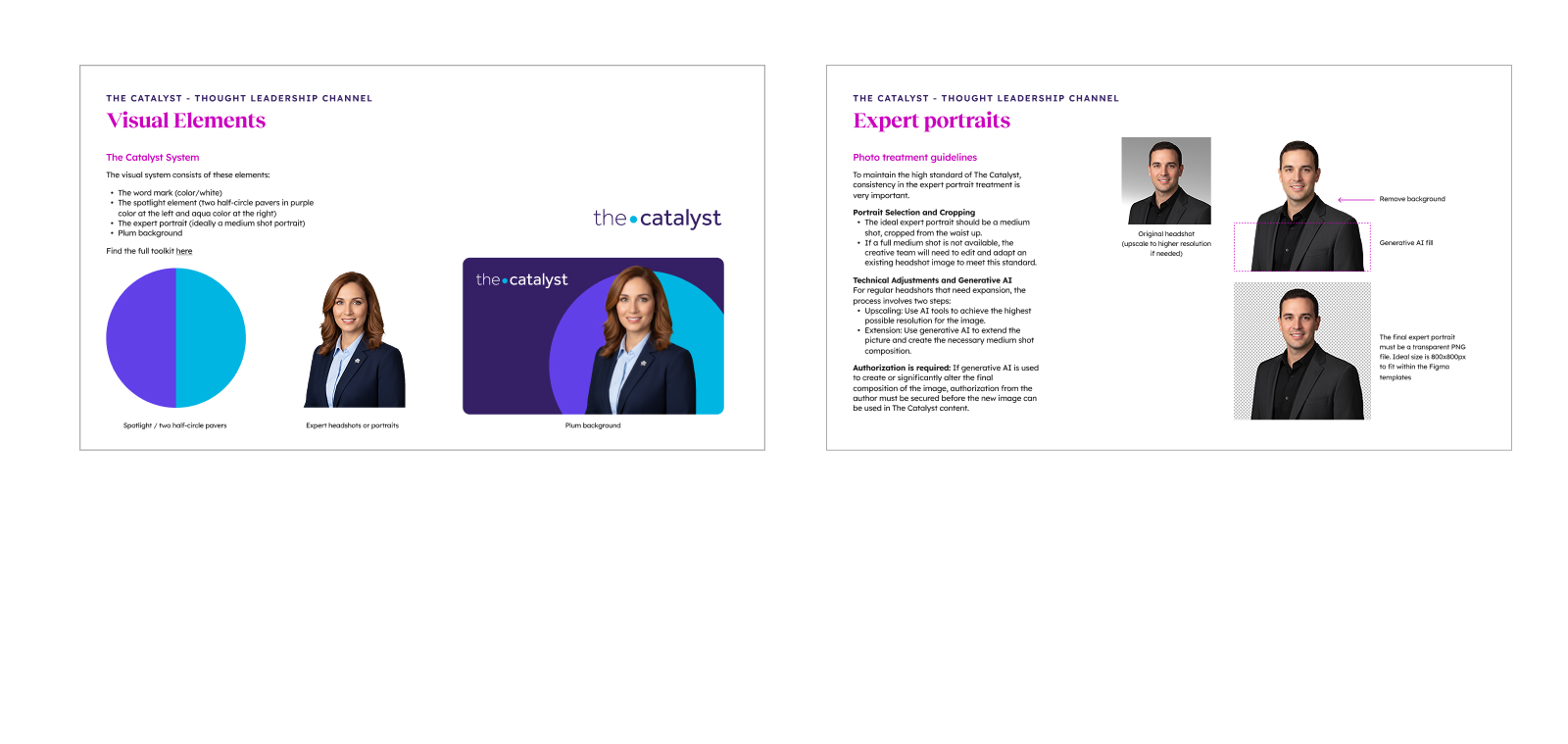 The Catalyst design system has been widely adopted across teams and channels, providing a clear, repeatable framework for publishing and promoting thought leadership content at scale. The system supports consistent storytelling across articles, social media, and email while allowing flexibility for different formats and expert voices. Two comprehensive expert photo libraries—partially enhanced using generative AI—reduced production friction and enabled faster content turnaround. Delivered alongside a full suite of Figma templates and a detailed design playbook, the system empowered design and marketing teams to operate autonomously and consistently. As the channel continues to roll out, early signals show increasing traffic and visibility for Catalyst articles, reinforcing its role as a central hub for Teladoc Health’s expert-led perspective.